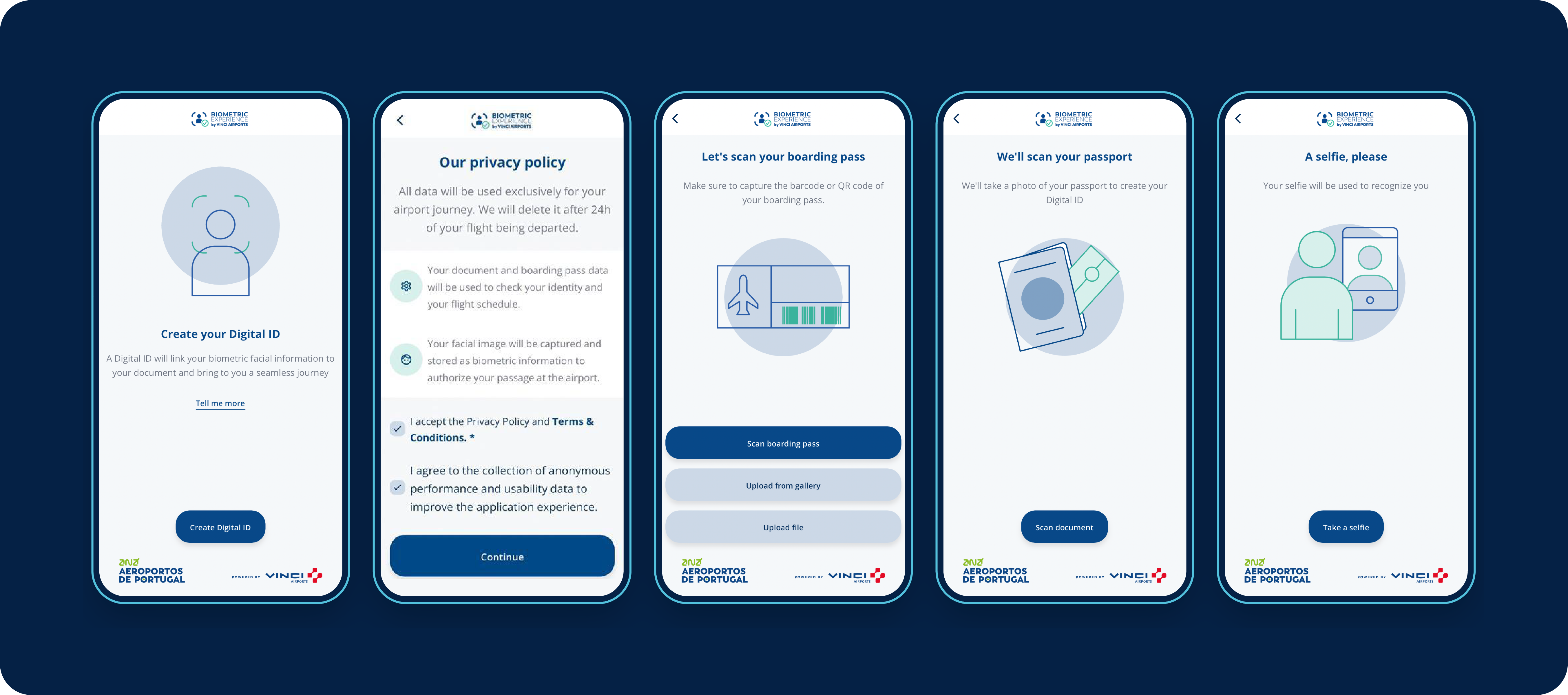 In the app, simply photograph/scan your boarding pass, electronic passport and take a selfie, accepting the terms and conditions